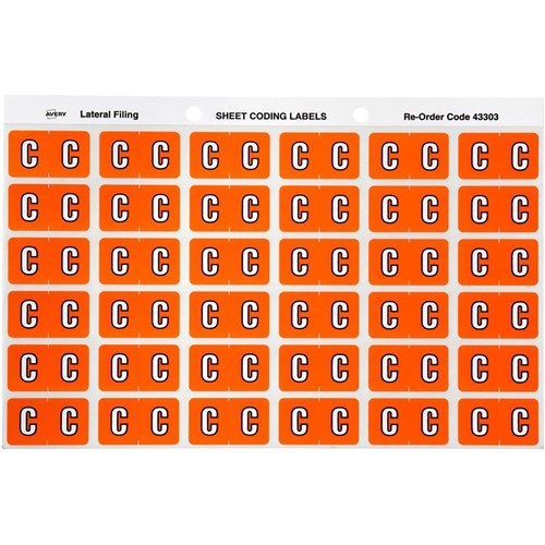 Avery Alphabet Coding Label C Side Tab 25x38mm Orange Pack Of 180