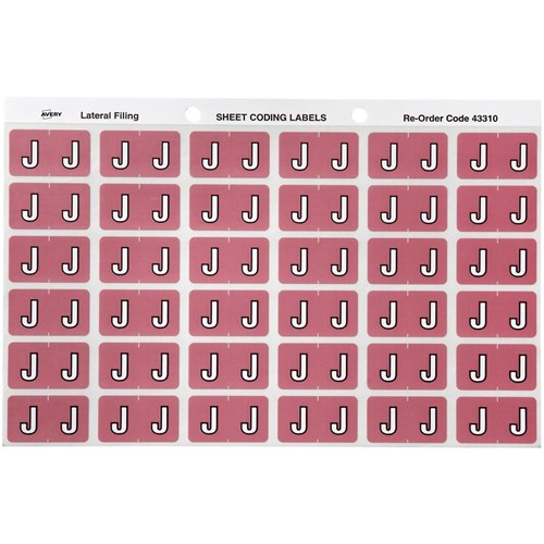 Avery Alphabet Coding Label J Side Tab 25x38mm Mauve Pack Of 180