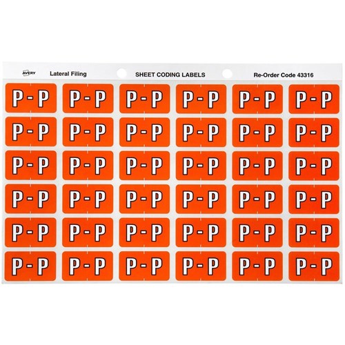 Avery Alphabet Coding Label P Side Tab 25x38mm Dark Orange Pack Of 180