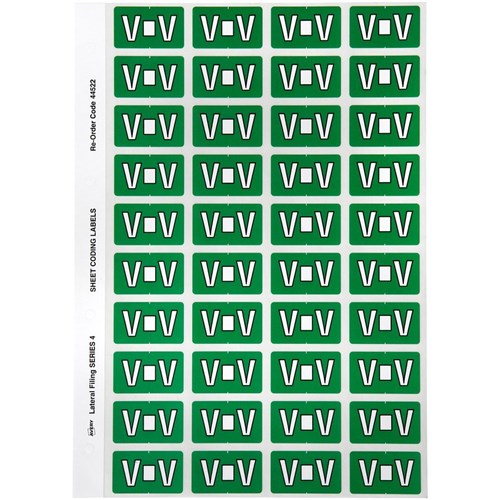 Avery Alphabet Coding Label V Side Tab 25x42mm Dark Green Pack Of 240