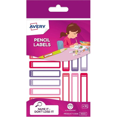 Avery Kids Pencil Labels 52 x 12mm Pink And Purple 30 Labels