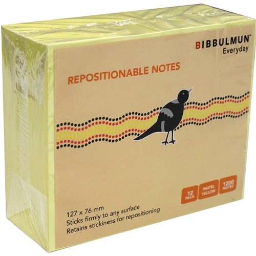 Bibbulmun Sticky Notes 76 x 127mm Yellow 100 Sheets Pad Pack of 12