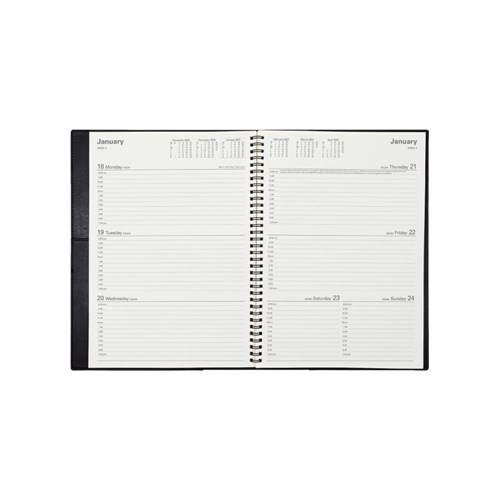 • Ideal for those 'on the move' with its double wiro binding and heavily grained metallic and matt PU cover.