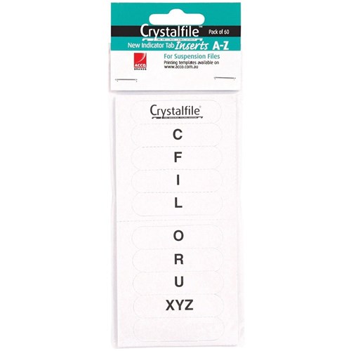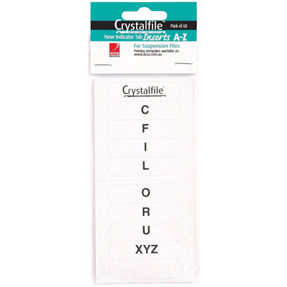 Crystalfile Indicator Tabs Inserts A-Z White Pack Of 60