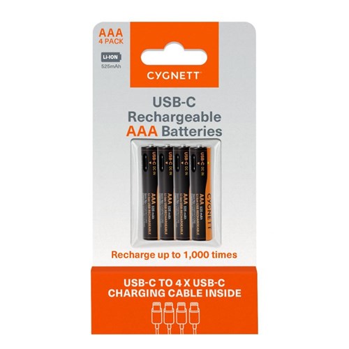Cygnett USB Rechargeable Battery Size AAA Pack Of 4