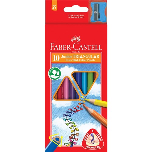 Faber-Castell Junior Coloured Triangular Pencils with Sharpener Pack of 10