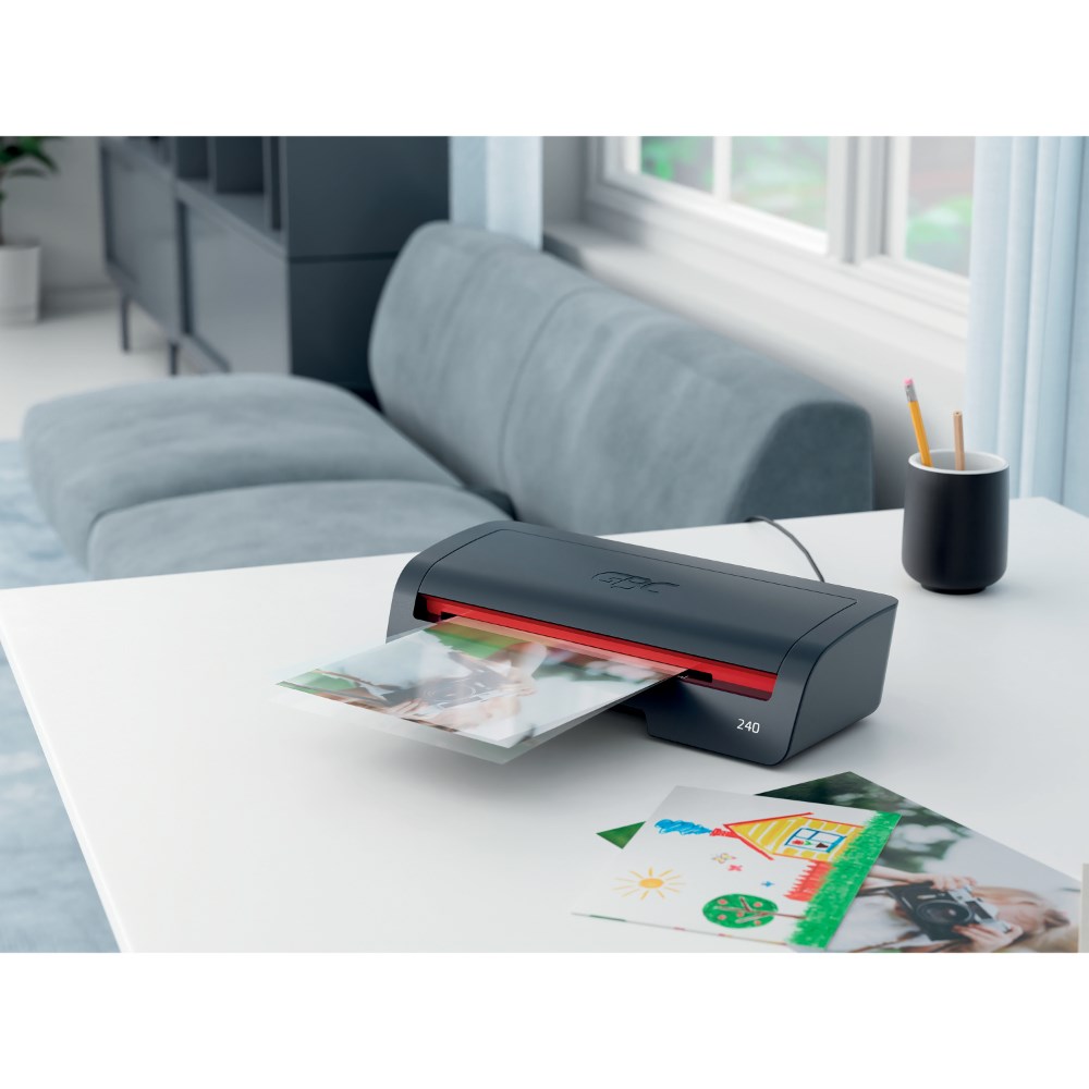 • Laminates a 75 micron A4 sheet in 45 seconds.