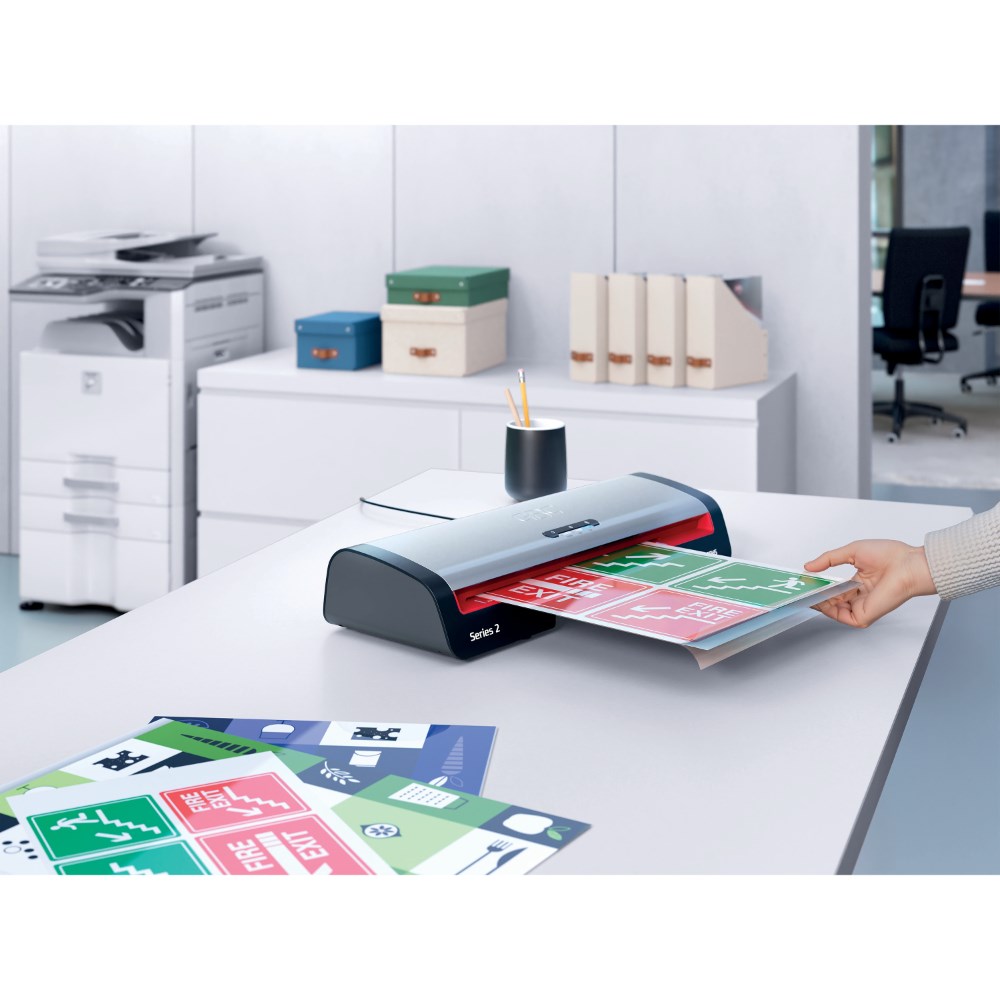• Laminates an A4 document (75 mic) in just 36 seconds and is compatible with GBC high-speed pouches.