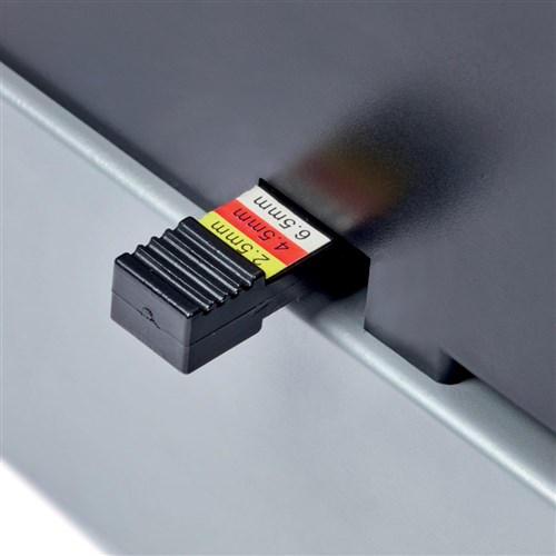 • With adjustable selector pins it enables effortless adaptation to paper up to A4, with the flexibility to customise margin depths.