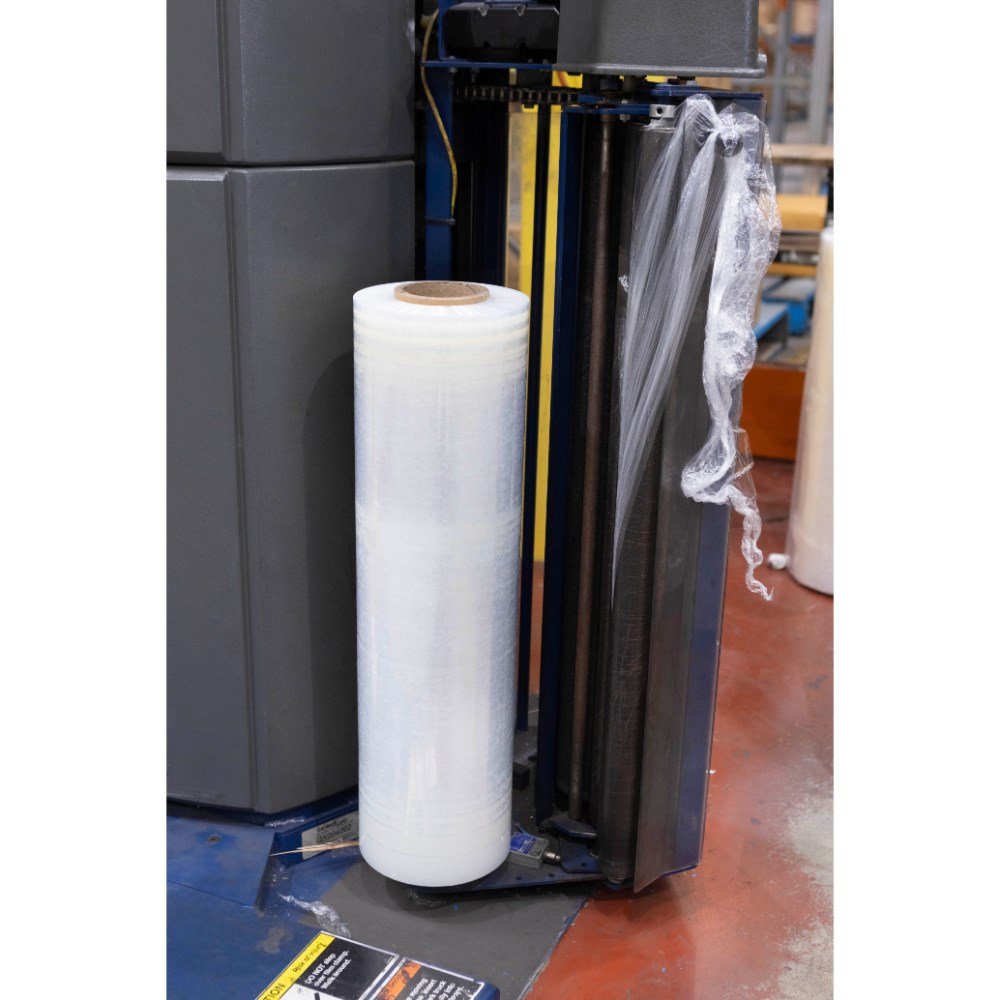 • Cast film provides a higher level of transparency for easy identification of your stored product and scanning of barcodes through the wrap.
