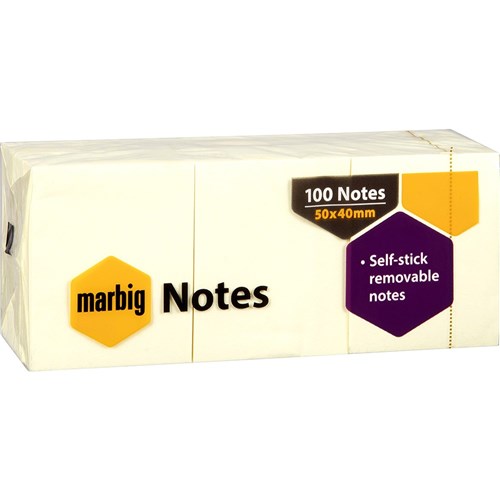 Marbig Repositionable Notes 40 x 50mm Yellow 100 Sheet Pad Pack Of 12