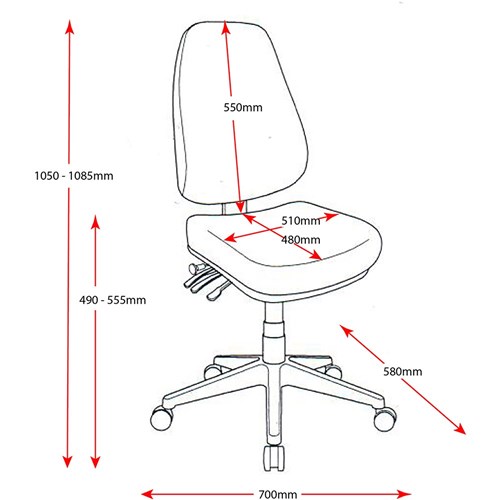 • Chair Dimensions: Seat 510W x 480D x Back 550H x Seat 490-555mmH.