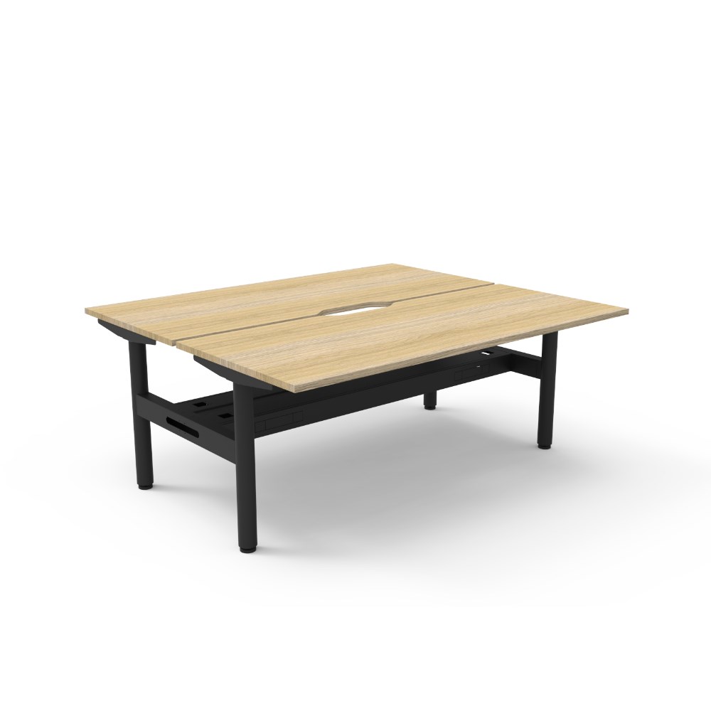• Natural Oak top Black Satin frame. Double sided workstation with cable tray.