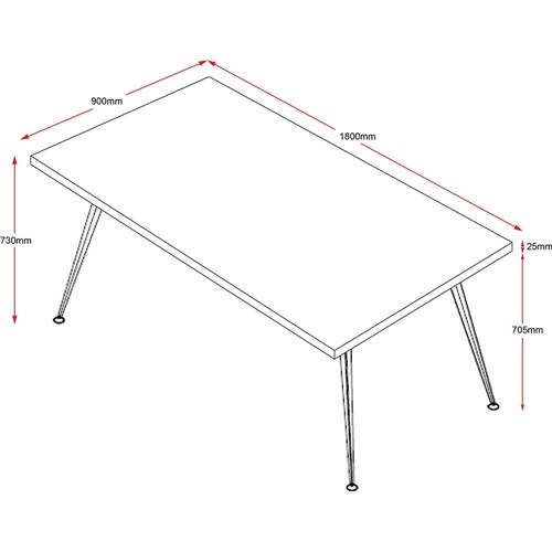 Rapidline Steel Frame Table 1800W x 900D x 730mmH Cherry Top Black Frame