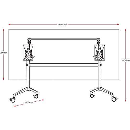 Rapidline Typhoon Flip Top Table 1800W x 750D x 750mmH Cherry Top Black Frame