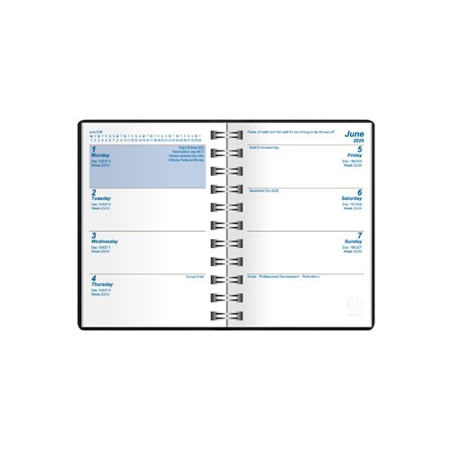 Upward Superior Diary A7 Week To View Black