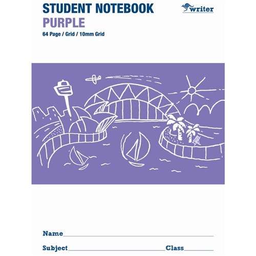 Writer Student Notebook 175x250mm 10mm Grid 64 Pages Purple